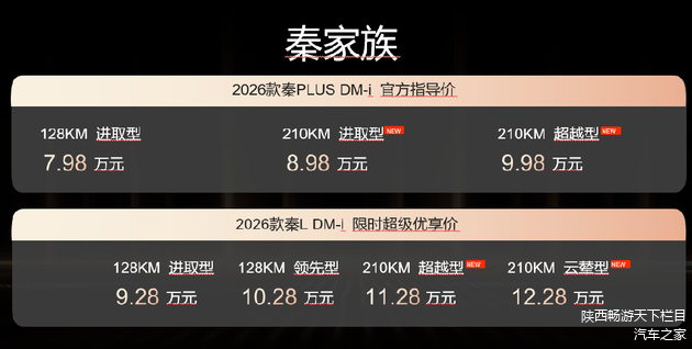 发布会的最高潮出现在价格与权益公布时刻。比亚迪王朝网陕甘宁战区大区经理李正伟先生正式公布了2026款秦、宋长续航版的指导售价及限时尊享权益: