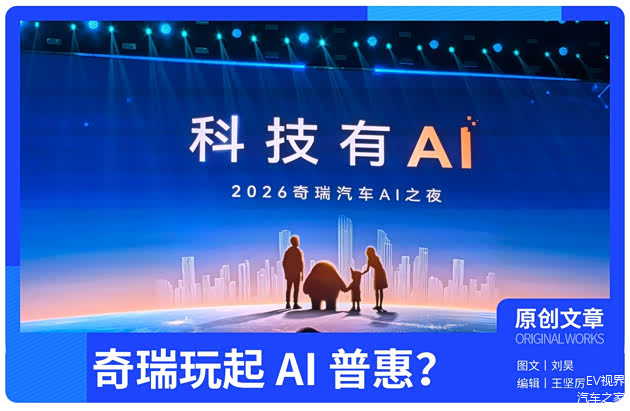 【EV视界报道】1月17日的奇瑞AI之夜,算是把“理工男”的浪漫和野心都摆到了台面上。没有花里胡哨的营销话术,上来就是智舱、智驾、底盘全维度技术轰炸,再甩出新车型矩阵和机器人军团,直接颠覆了大家对“出口冠军”只懂造传统车的固有认知。更狠的是,奇瑞喊出的“AI平权”绝非空口号,超35款车型年内普及AI、高阶智驾下探主流市场的规划,既戳中了行业痛点,更把实实在在的福利递到了普通用户手里。而这场技术盛宴中,最贴近消费者的,莫过于多款新车的亮相与盲订政策。先说说最让普通消费者关心的部分:新车和实打实的权益。这次打头阵的 风云T9L,定位家用中型插混SUV,一上来就开启盲订,999元就能锁定优先提车权,还送露营套装和品牌体验资格,关键是能随时退订,没套路。作为奇瑞把高阶智驾推向主流市场的关键车型,它的硬实力够不够打?咱们拆开说。