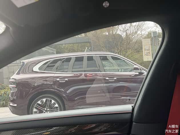 尺寸是极氪8X绕不开的话题。5100毫米的车长、1998毫米的车宽、3069毫米轴距,整体比极氪9X略小,但已经明显大过问界M7、理想L8,甚至宝马X5。视觉上,这台车强调的是厚重和肌肉感,而不是线条锋利的运动风格。窗框、门把手等细节的大量镀铬,再加上偏深色的车漆选择,豪华取向非常直接。