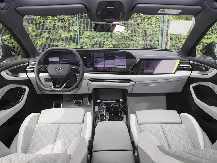 进入车内,A5L的变化比外观更激进。11.9英寸仪表、14.5英寸中控屏、10.9英寸副驾娱乐屏,再加上13.1英寸W-HUD,信息呈现非常完整,但布局逻辑依然清晰。E³ 1.2电子电气架构带来的响应速度和系统流畅度,是这套座舱体验的基础。相比传统燃油奥迪,这套内饰更像是在向电动车时代靠拢。