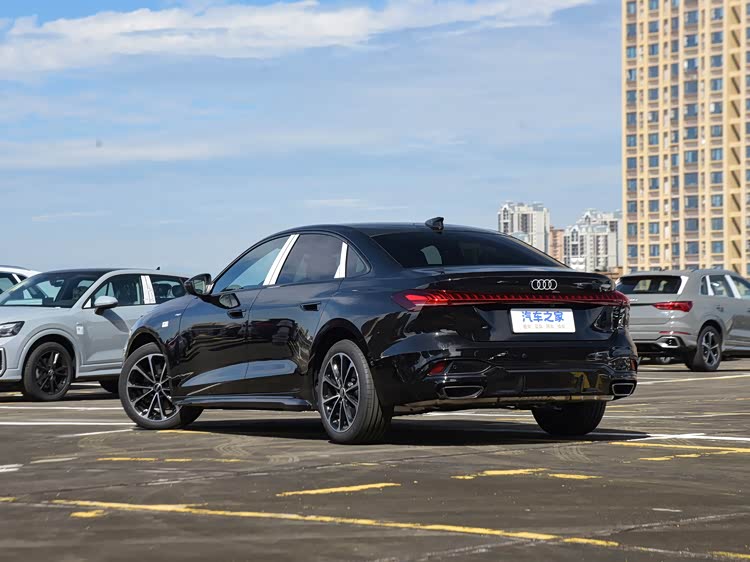 侧面是整车气质的核心。从B柱开始下滑的溜背曲线非常克制,没有为了运动而牺牲比例,反而让整台车看起来更修长。无框车门、掀背尾门、悬浮式车顶这些元素放在一起,让A5L在一众三厢B级车中非常好认。18英寸和19英寸轮毂的选择,也给不同用户留下了空间取向和运动取向的余地。