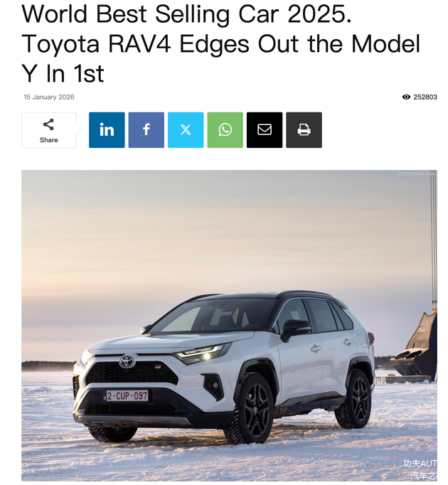 据外媒focus2move统计的一份“2025年全球热销车排行”榜单中,“中国脸孔”反而并没有出现在前十。