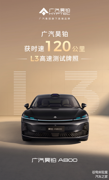 广汽昊铂A800获得“L3级特定场景自动驾驶道路测试”牌照
