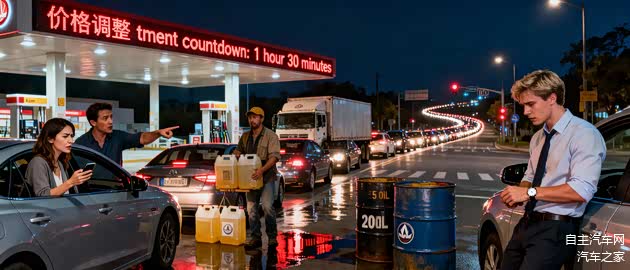 在北京朝阳区某加油站,晚上10点的队伍从加油机延伸到百米外的路口。刚下班的白领小张告诉记者,他绕了三公里过来,已经排了40分钟队:“明天涨价,能省一点是一点。”不远处,一对情侣正低声争执——男生坚持等,女生抱怨“浪费时间,不如回家做饭”。更夸张的是货车司机老王,他搬着5个20升的空油桶挤进队伍:“跑长途用油多,100升能省8块,排队一小时也值。”