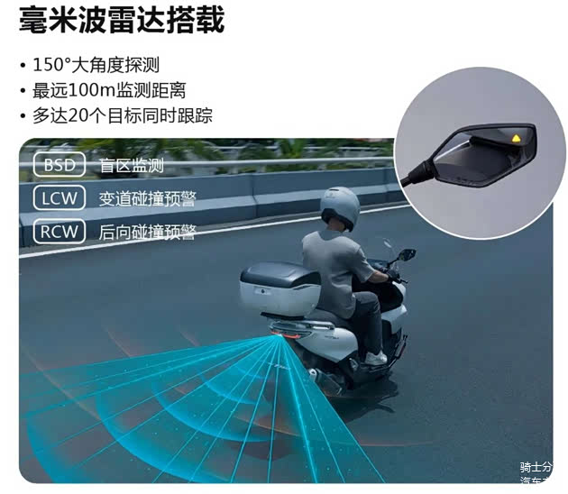 也是基于这种客观条件,目前有不少摩托车实现了“盲区监测”功能,有的是通过毫米波雷达传递实时信号,而有的则会通过摄像头传输路况画面,以起到警示和提醒的作用。因此务必要重视摩托车的盲区,一定要养成变道和掉头时谨慎观察的习惯。