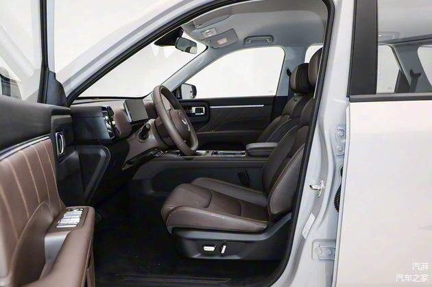 而在拉开车门后,星光560的座舱表现可以说也非常完善了。它的环抱式座舱设计,具备暖沙棕、胡桃棕两种配色选项,前者主打家用温馨、后者进一步释放高级感。