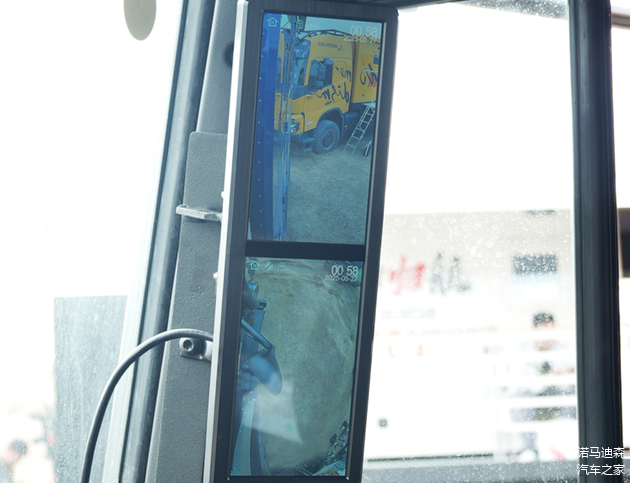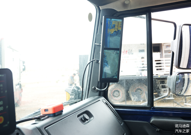 除此之外,这次驾驶室A、B柱上的电子后视镜(此为选装项目),也着实给了大家不小的惊喜,也算是典藏版里又一个亮眼配置。熟悉奔驰重卡系列的朋友,对它的电子后视镜应该不陌生,像AROCS底盘搭载的就是奔驰原厂原装的MirrorCam电子后视镜,而“撼路者Q”这套则是选配后装的流媒体后视镜。虽说是后装选配,但实际体验下来,二者在核心功能上并无明显差距,都能呈现细腻清晰的图像,支持双画面显示,也能切换广角镜头与常规镜头视角,满足不同场景下的观察需求。如果经常跑夜路和复杂越野路况时,电子后视镜的优势就格外凸显,它能有效规避传统后视镜的反光、视野盲区问题,提供通透、清晰的后方画面,哪怕是昏暗的越野路段,也能清晰捕捉周边车况。