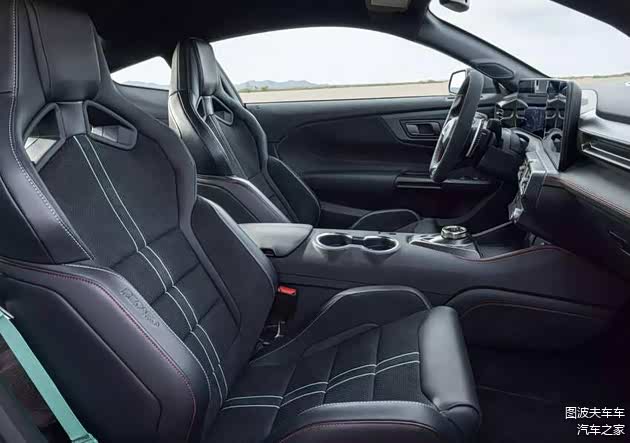 野马 Dark Horse SC 内饰设计也向 GTD 终极野马看齐,采用同款运动化平底方向盘,并透过碳纤维饰板搭配 Alcantara 麂皮营造出战斗感十足的座舱氛围。除此之外,也可选用 Recaro 赛车座椅进一步加剧热血感受。