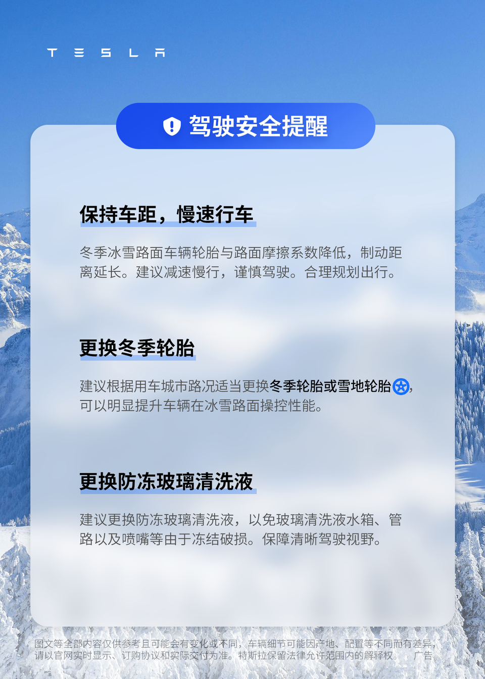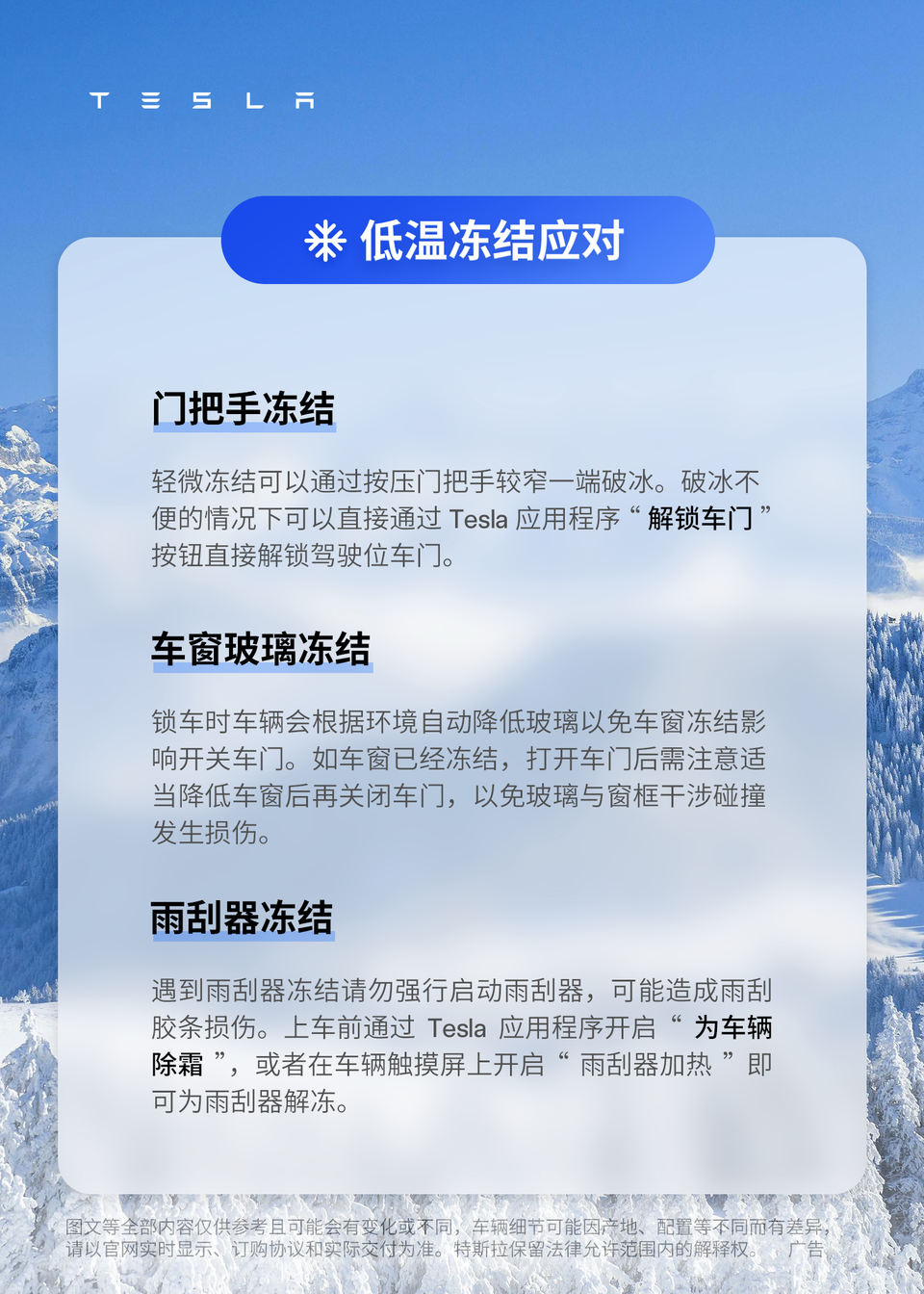 寒冬已至,多一分准备,多一分安心 这份特斯拉冬季用车宝典请收好📖 安心出发,温暖一路随行❤️