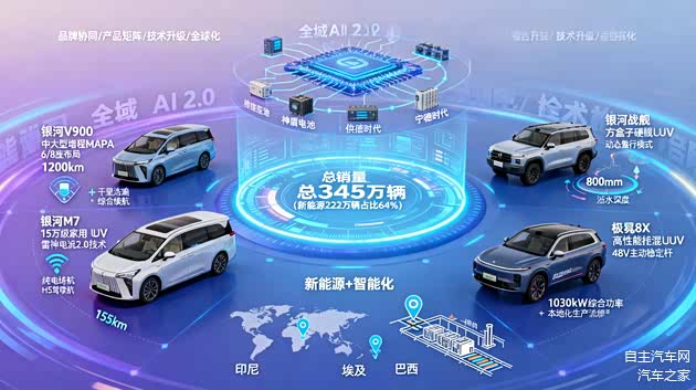 2026年,吉利汽车将新能源车型销量目标锁定在222万辆,占总销量的64%,这一数字背后是品牌对"新能源+智能化"战略的深度落地。在其超10款全新车型矩阵中, 银河战舰作为科技硬派SUV的代表,凭借方盒子造型、AI智能四驱、蟹行模式等黑科技,成为搅动硬派SUV市场的关键变量。这款车不仅是吉利技术协同的产物,更试图在都市露营与轻度越野的场景中,重新定义硬派SUV的用户价值。