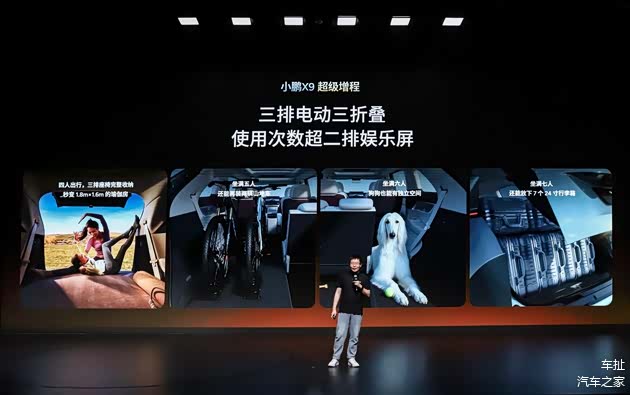 除了前卫的造型,小鹏X9超级增程标配了后轮转向系统,可实现5.4米的最小转弯半径,让新手司机也可以从容驾驭。同时,其配备的三排电动三折叠功能,大幅提升了车内空间布局的灵活性,即可7座满员出行,也可自由切换4座露营大床房、5座载自行车,更好适应全场景出行需求。