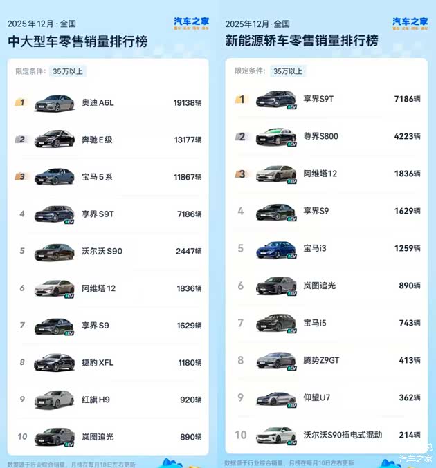 当2025年的车市尘埃落定,一个新名词悄然流行:“SBBA”——S代表享界,BBA仍是德系三强。这一变化的背后,是享界12月销量突破8815台的硬核表现,更是在35万+中大型豪华轿车市场连续三个月稳居前四的持续强势。曾经由德系垄断的豪华高地,正被中国力量悄然重塑。