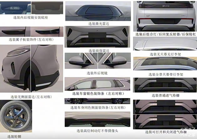 车身侧面用了半隐藏式门把手,搭配全新五辐运动轮圈;车尾的新尾灯是贯穿式点阵光源,和前脸灯带呼应,后包围装饰条和车顶扰流板也优化了,既好看又能提升空气动力学表现。申报信息显示,新车有很多选装方案,像激光雷达、全景天幕、车顶行李架、银色窗框饰条等,能满足个性化需求。