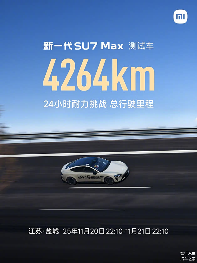 2026年1月19日,小米汽车发布了一条令业界瞩目的消息:新一代SU7 Max在24小时耐力挑战中,以4264公里的累计行驶里程刷新了纪录。