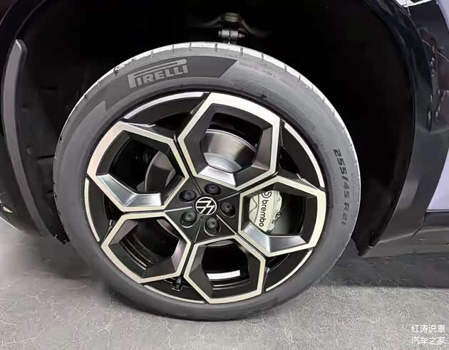 与众08整车长宽高分别达到了5000*1954*1688毫米,轴距为3030毫米,算得上是个大块头了,这样的身材有着一定的存在感,从侧面来看,采用隐藏式电动门把手,轮眉应用亮黑色材质,侧窗到了后方进行了上扬,双色花瓣状的轮毂吸引人眼球,将全系标配4活塞布雷博刹车卡钳。