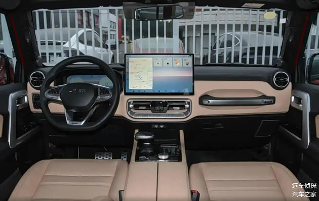 进入车内,两款车的配置差异体现了目标用户群的不同。BJ40探险家的座舱设计明显偏向传统越野车,2026款有一些改进,比如搭载15.6英寸中控屏,内置高通骁龙8155芯片,配合华为应用生态,保证功能丰富性。加上主驾座椅电动调节、前排座椅通风/加热。