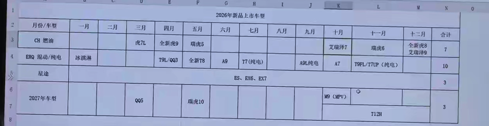 不止23款!奇瑞2026年新车规划曝光!最近有网友曝光了一组奇瑞汽车的2026年新车规划,仅表格中就显示了奇瑞的2026年新车矩阵,重点是,里头并没有显示目前销量明星品牌捷途汽车的新车规划,目测加上捷途和iCAR两个事业部,2026年的奇瑞新车将会更多!