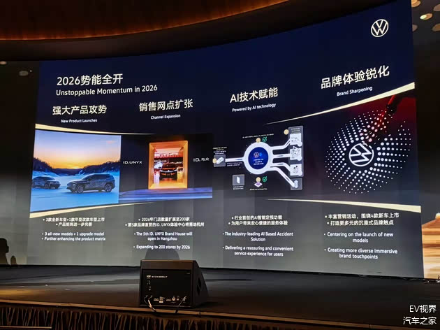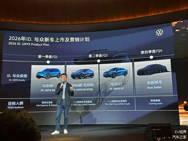 营销层面的跨界合作,同样跳出了“流量陷阱”。与《不眠之夜》的合作,不是简单的车身贴标,而是让用户在沉浸式戏剧中感受品牌的先锋调性;与新锐珠宝品牌何方的联名,瞄准了女性用户对“精致感”的需求;与《疯狂动物城2》的合作,则用年轻化的语境拉近与Z世代的距离。这些合作没有追求短期的曝光量,而是通过“情绪价值”的传递,让品牌融入用户的生活场景。比起“喊口号式”的年轻化营销,金标大众的做法显然更高级。它不试图讨好所有用户,而是精准对接那些认同“先锋、潮流、个性”的群体,用内容建立情感连接。看到这里或许会明白,金标大众2025年的“起势”,是把“用户价值”拆成了一个个可感知的细节,没有惊天动地的口号,却用每一项扎实的实绩,回答了“用户真正需要什么”这个核心问题。2026年进击的底气从何而来?2025年的稳扎稳打,本质是为2026年的“进击之年”积蓄势能。当行业还在纠结2025年的销量排名时,金标大众已经完成了产品、网络、技术、服务的全链路布局,即将迎来势能全面释放的时刻。而这份底气,恰恰来自2025年埋下的三大伏笔。第一个伏笔,是“产品矩阵的完整度”。2026年将推出的4款新车,不是零散的补充,而是精准覆盖核心细分市场的“组合拳”:与众08作为旗舰SUV,定位“大众智能新标杆”,融合德系精工与本土创新,面向“生活探享家”群体,既满足个人驾驶乐趣,又兼顾家庭需求,800V超充技术、双腔空气悬架等配置,直接拉满产品力。