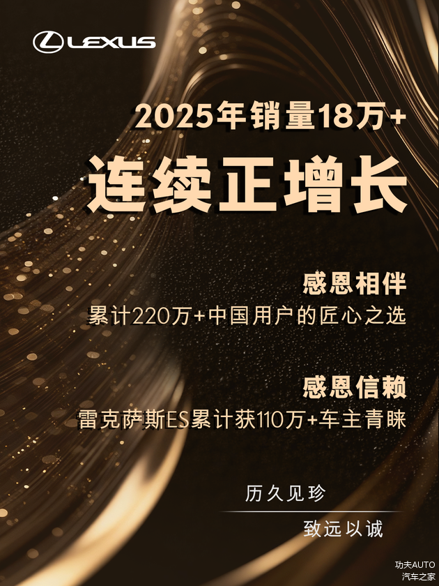 当下营销泛滥,不乏依赖流量与价格战抢占市场的情况,丰田则聚焦品质与服务积累口碑。长期以来,“可靠、耐用”的标签深入人心,使其持续获得用户认可。2025年,是雷克萨斯深耕中国20年,凭借ES、NX、RX以及一众大型车的稳健发力,印证了本土适配的重要性。