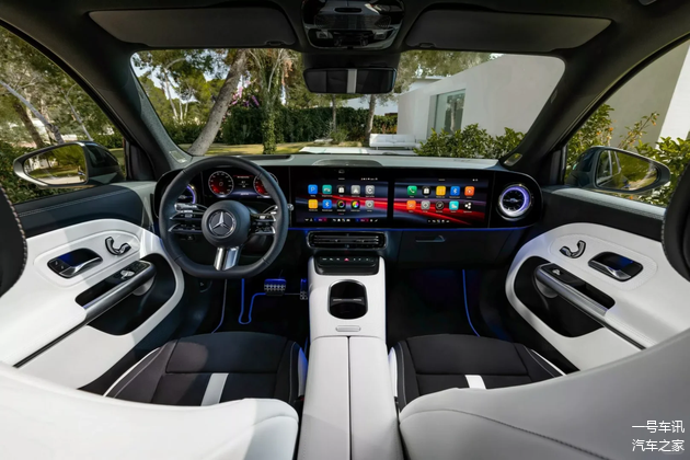 内饰是它的一大亮点,悬浮式MBUX超级屏十分吸睛,由三块大屏融为一体,科技感直接拉满。而且它搭载了第四代MBUX系统,内置ChatGPT4o虚拟助手,人机交互更智能便捷。