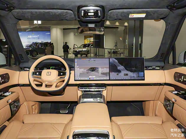 极氪9X的内饰看上去有点像理想L9,不过多了13英寸液晶仪表盘,中控屏幕和副驾屏幕的尺寸都是16英寸(3.5K OLED屏),还标配47英寸的AR-HUD投屏。它的车机内置两颗骁龙8295P芯片,系统运行起来十分流畅。