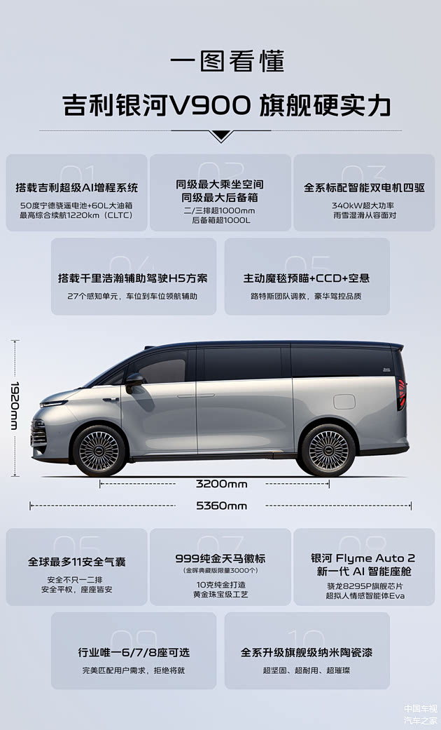 但1月20日吉利 银河V900的上市,好像把这些难题都给解了。这台号称“AI全场景家庭旗舰MPV”的车,不仅搞了个汽车行业首个跨界美食综艺发布会,还拿出了26.98万-32.98万的限时指导价,更甩出了三排同权大空间、1220km超长续航、路特斯调校四驱这些硬核配置。它到底是不是真·大家庭出行救星?今天咱就掰开揉碎了好好唠唠。