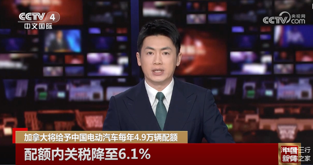 1月16日,加拿大总理卡尼访华签订《中加经贸合作路线图》将中国电动汽车进口关税从100%降至6.1%,并设立每年4.9万辆的配额,配额将按比例逐年增长,五年内预计增至7万辆/年。