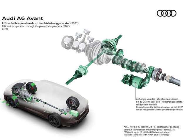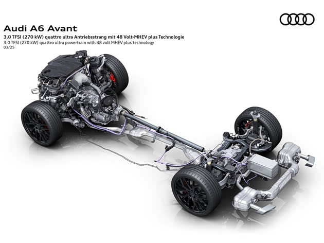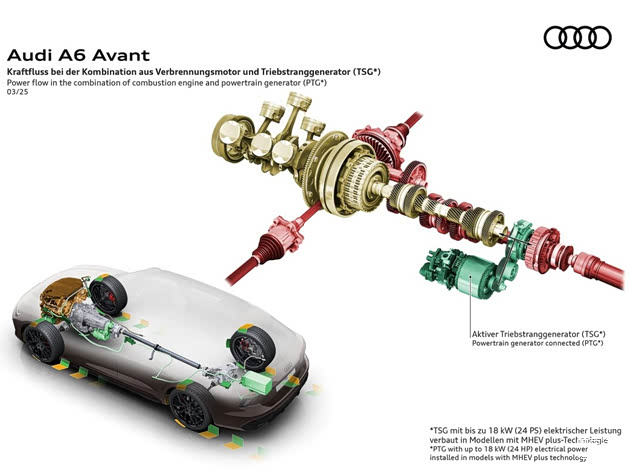 更重要的是,无论是DXG版本还是DWV版本,一汽奥迪都为其配备了MHEV PLUS轻混系统,其核心是P0+P3的HDI双电机单元,以及位于后备箱的48V锂电池组,这是PPC平台相比MLB平台最核心的技术革新。