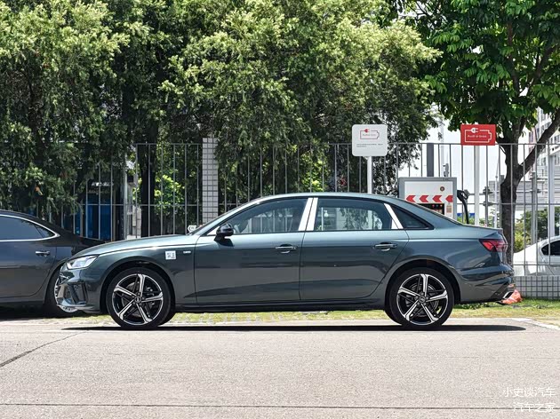 再来看车身侧面部分,奥迪A4L的车身线条流畅而优雅。一条从前大灯贯穿至车尾的腰线,不仅增加了车身的层次感,还营造出一种向前俯冲的运动姿态。车身比例协调,轴距达到了2908mm,在同级别车型中具有一定的优势,为车内乘客提供了较为宽敞的腿部空间。此外,奥迪A4L还配备了大尺寸的轮毂,多幅式的设计造型精致,与车身相得益彰,既提升了车辆的视觉效果,又保证了行驶的稳定性。