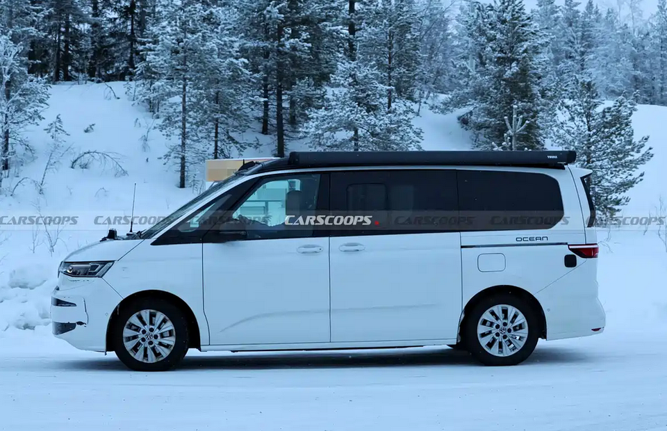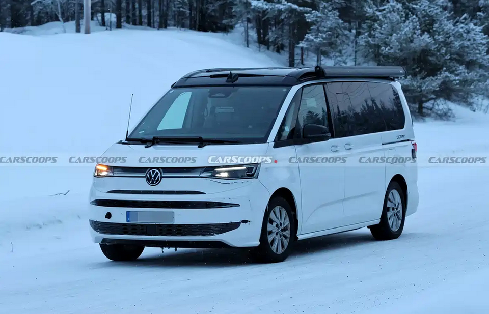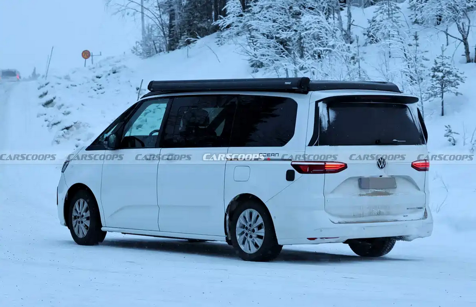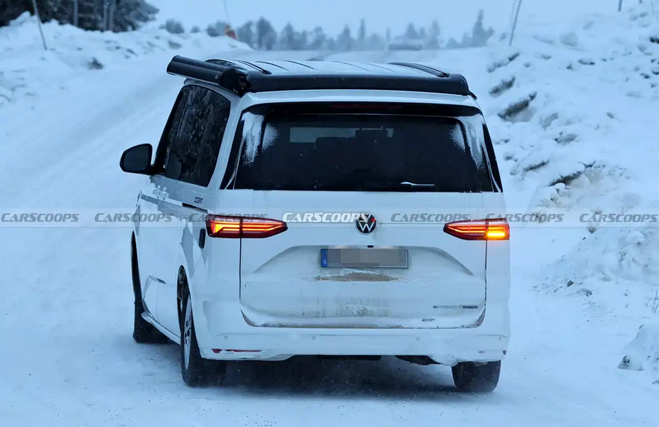 外观方面,新款大众T7配备了全新的前大灯组,车灯的尺寸更大,并且内部的结构也发生了改变,可以看到日行灯及转向灯位于最上部,大灯在下方。位于前包围处的进气口也是贴纸,新款车型取消了进气口,会变为近似ID. Buzz的设计。车辆尾部则没有太大的变化,保险杠会有细微的调整。