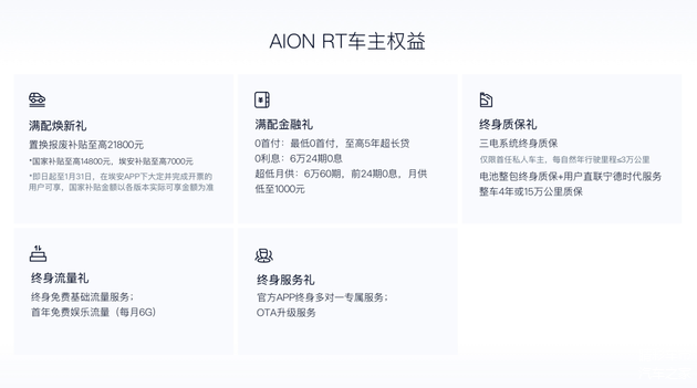 这个周末不妨带上旧车证件,去附近的埃安店,现场查一查补贴资格,体验一下AION RT焕新款的后排空间、试一试宁德时代电池的快充速度、问清楚“三担责”的具体条款。或许你新年换新车的目标,能就此锁定。