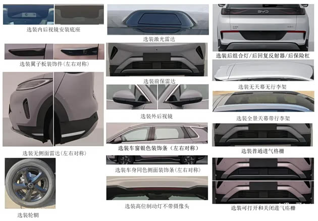 另外,全新比亚迪海狮05DM还提供了激光雷达、前保雷达、全景天幕、外后视镜、车窗银色装饰条、内后视镜安装底座、黑色五辐轮辋等配置可供选装。