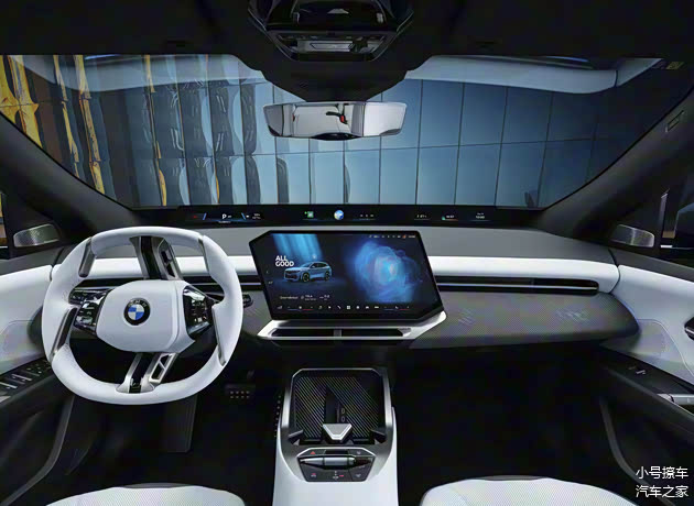 内饰方面采用了BMW全景视域桥设计,提供有3D抬头显示系统、贯穿了中控台的视平线全景显示系统以及四边形的悬浮式中控屏,有着比较强的科幻感,最大程度上保留了概念车的设计语言,多功能方向盘也没有缺席,小巧的拨杆式挡把依然位于操作台部分,前方设计有无线充电面板,下方则是镂空的储物槽。