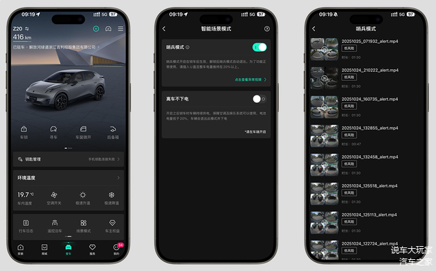 周末带宠出游的场景中,新增的宠物模式成为养宠家庭的贴心配置。当车主临时离车且宠物留在车内时,该模式会自动开启离车不下电、空调外循环,关闭小窗并屏蔽状态栏与任务栏,中控屏同步展示宠物关怀界面,为宠物营造安全舒适的车内环境,让车主无需再为宠物留车而焦虑。而升级后的哨兵模式则解决了停车安防的顾虑,车辆异常触发监控后,视频会按时间倒序排列并区分高、低风险类别,云端分别保留10条对应记录,更多视频可在车机内查看,为车辆安全筑起全方位防线。