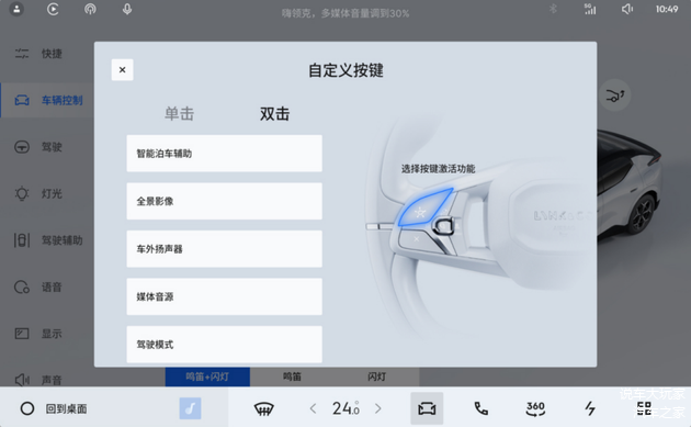 细节配置的全面优化则让全场景出行更顺畅。液晶仪表新增导航红绿灯倒计时、电池电量百分比显示,HUD抬头智显补充了巡航红绿灯倒计时、绿波车速、目的地剩余里程与时间等信息,让不同场景下的行车关键数据一目了然。车控车设方面,优化了RPA泊车辅助这一辅助功能,方向盘自定义按键新增双击指令,同时支持氛围灯亮度调节与地图导航音量记忆,每一处调整都贴合用户在不同场景下的使用习惯,实现千人千面的个性化体验。