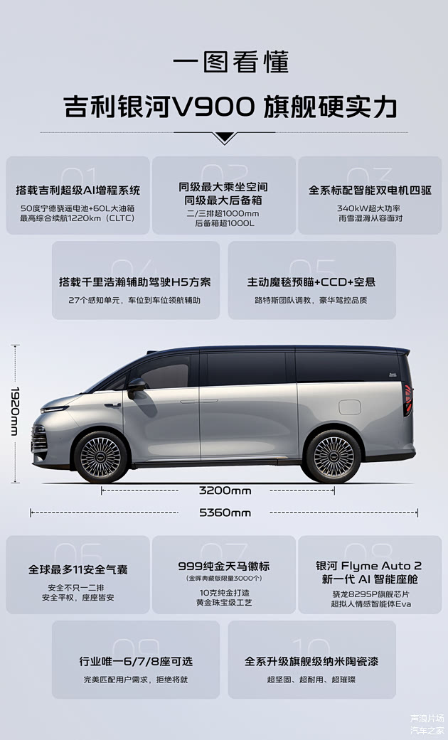 银河V900的上市,表面是吉利银河产品矩阵的完善(从熊猫mini到豪华MPV),深层却是一次对豪华MPV价值体系的重构。它证明真正的旗舰不应止于材质堆砌,而需通过技术实现空间民主、安全平等与情感共鸣。在新能源MPV陷入配置内卷的当下,银河V900以“家庭关系协调者”的定位,为行业提供了新范本:一辆好车的终极使命,是让共处一车的时光,成为家人愿意延长的温暖时刻。