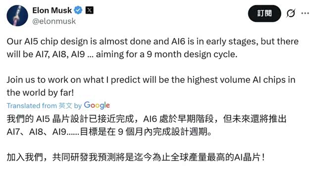 不过,外界对马斯克这一言论存有质疑。据此前公开表态,马斯克曾在2023年7月称AI5芯片已经“设计完成”。若此说法属实,则当前再度提及“接近完成设计”便显得前后不一。