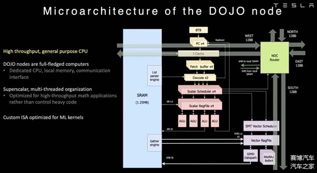 从马斯克透露的消息来看,D1的设计哲学是极致优化,即通过剥离一代通用计算功能,打造出一个精简的、大规模并行的训练“猛兽”,其激进架构主要体现在两方面。