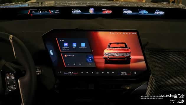 它没有传统仪表盘,视平线全景显示替而代之,我也感受过友商的那款,我认为区别在哪呢?第一,宝马的完全放在了机盖下方,以实际体验来看,驾驶员的主要视线还是在路面,再加上宝马视觉锥的设计理念,驾驶员仍然有很强的“归属感”。第二,它和驾驶员的距离把握的刚刚好,不远不近,且给我的景深感很好。第三,戴墨镜一点也不耽误观感。