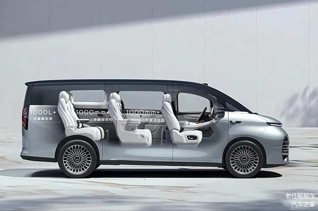 吉利银河V900定位中大型MPV,车身尺寸长宽高5360*1990*1920(1940)mm,轴距3200mm。超大车身尺寸使其“得房率”高达91.8%,让银河V900成为拥有四排8座(2+2+2+2)布局的乘用MPV。当然还有6座(2+2+2)和7座(2+2+3)布局,200mm的二排中央通道宽度,乘坐空间更舒适,后备厢容积1100L满足家庭出行的载物需求。