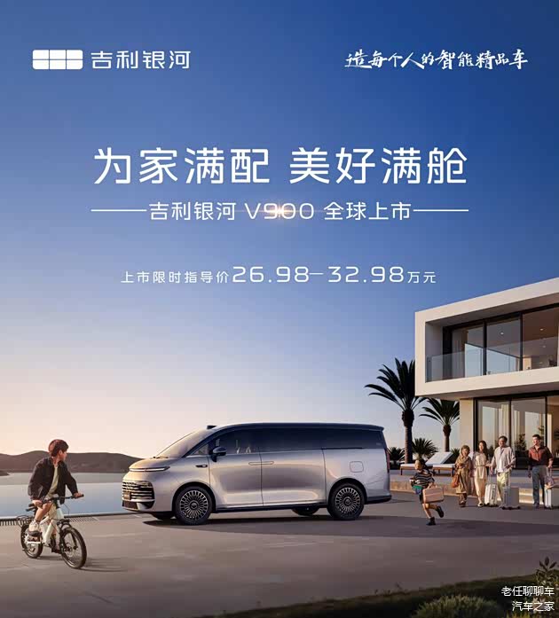 1月20日,吉利银河旗下首款中大型MPV—— 银河V900正式上市,共推出3款配置车型,官方指导价30.98—36.98万元,限时售价26.98—32.98万元。