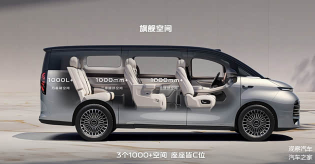 空间设计上,银河V900秉持“空间平权”理念,91.8%的超高得房率让每一排都不再是“妥协空间”。其提供6座、7座、8座三种灵活布局,无论是商务接待所需的独立航空椅6座版,还是二胎家庭青睐的7座版,亦或是三代同堂出行必备的8座版,都能精准适配不同家庭结构。全车遍布42处收纳空间,搭配1100L超大后备厢与163升下沉储物区,婴儿车、露营装备、老人随身物品等都能各得其所,后备箱52.1公分的低离地高度,让搬放重物毫不费力。