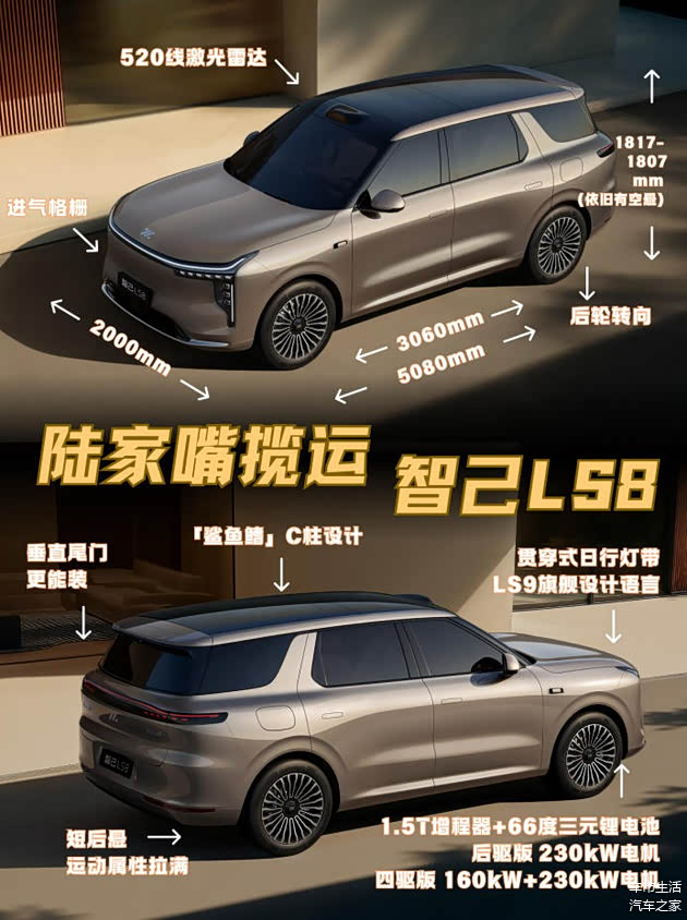 当下的豪华SUV市场,设计同质化早已成为难以逾越的瓶颈,而智己LS8官图的正式释出,无异于在平静的湖面投下了一颗巨石。作为大厂新势力在高端新能源赛道上的最新力作,这台车不仅承载着品牌向上突破的厚望,更通过一种近乎反潮流的硬朗姿态,重新定义了都市旗舰的审美标准。外界纷纷将其视为LS9的兄弟版小旗舰,如果说LS9以其宏阔的体量被赋予了陆家嘴大揽胜的美誉,那么LS8则凭借更为紧致且富有爆发力的线条,精准地卡位在陆家嘴揽运的角色上。这种定位上的差异化,并非简单的尺寸缩减,而是一次关于运动与优雅、空间与操控的深度重组,旨在为那些既追求行政级质感又不愿放弃驾驶激情的都市精英提供新选择。