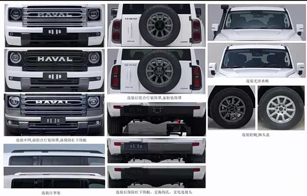 从申报信息来看,新H9将提供极为丰富的选装配置,涵盖车辆各个部位和功能。外观方面,消费者可以选择不同风格的中网、前后保险杠下饰板、行李架、前后组合灯装饰罩*以及备胎装饰罩。对于不需要拖挂功能的用户,车辆还提供“无拖钩孔、无电连接头”选项。