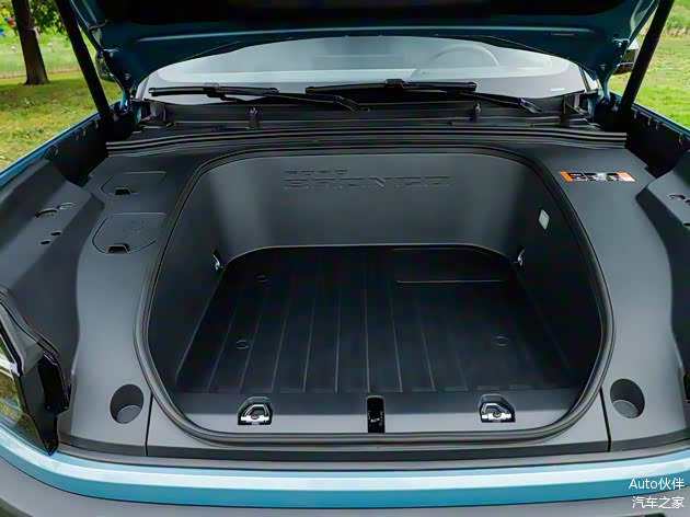 底盘用的是前铝合金双叉臂+后五连杆独立悬挂,开着稳,也够耐用,搭配8种全地形模式、越野蠕行功能,还有3米的小转弯半径,通过性比普通城市SUV强不少,30°接近角、32°离去角、220mm离地间隙,大部分复杂路况都能应对。电池安全也放心,6层底部防护+IPX9级防水,户外玩水、走烂路都不用怕伤电池。