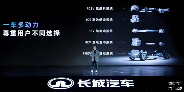 例如,一款20万价位的长城SUV产品,你可以为选择使用1.5T汽油发动机+9DCT双离合变速器(ICE汽油车),也可以换成1.5T汽油发动机+前后双电机(HEV油混车),还可以扩展成大容量电池,使其能油能电(PHEV插混车),或者也可以把发动机替换成前后双电机成为一台BEV纯电汽车。
