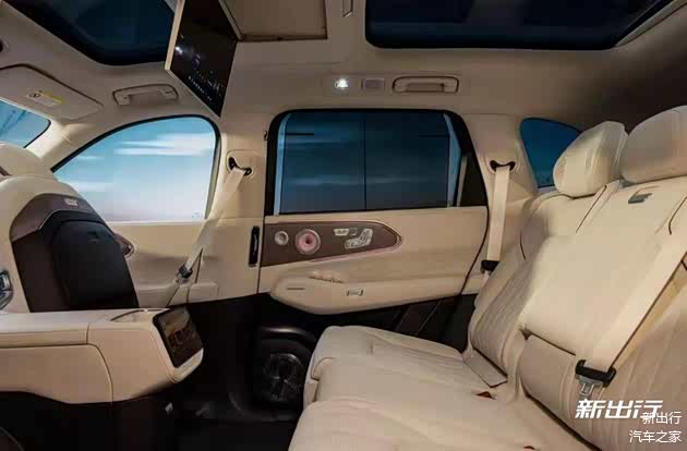 来到后排,配置同样非常丰富,例如后排娱乐屏、零重力座椅、前后分区电动天窗、电动门等配置一应俱全。