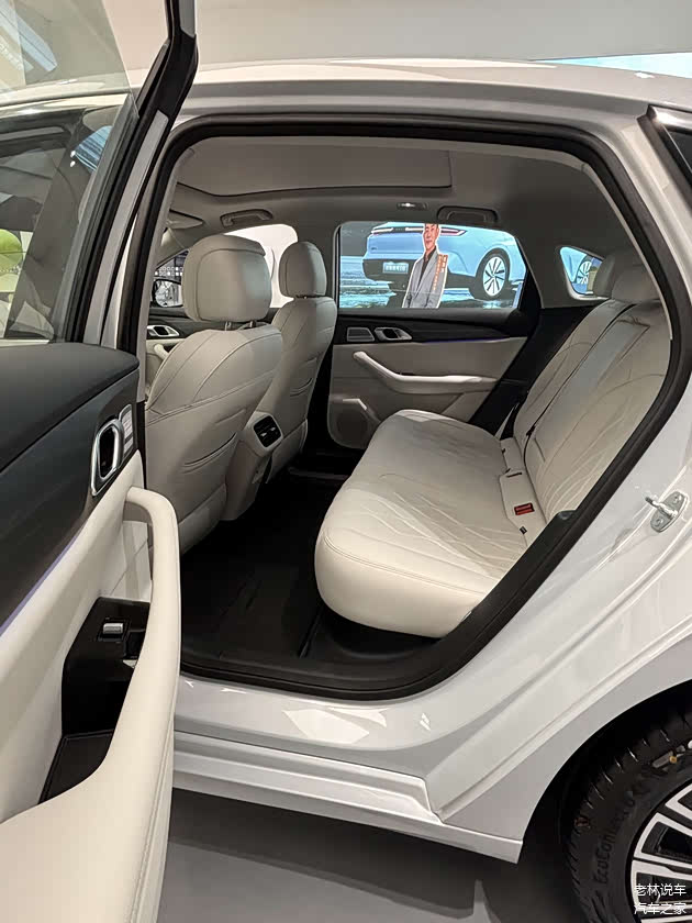 来到后排,座椅的乘坐舒适度不错,坐垫很长,靠背角度合理,座椅内部填充软硬适中,后排腿部空间也很宽敞,再加上平整的后排地板,满足一般的家用需求绰绰有余。