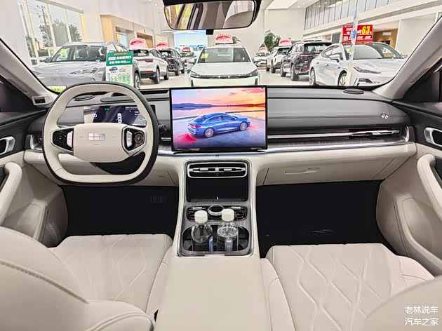 来到车内,你会发现它的内饰设计以简洁为主,配备了上下扁平的两辐式运动方向盘、电子怀挡、10.2英寸液晶仪表盘、15.4英寸2.5K中控屏幕(低配车型为14.6英寸中控屏幕)和50W手机无线充电面板(高配车型才有)等,内饰的用料和做工还可以,功能方面支持高德地图、语音识别控制、车联网、手机APP远程功能和OTA升级等,你还可以通过CarPlay、HUAWEI HiCar、Carlink、Flyme link连接智能手机,把手机上的功能映射到中控屏幕上。