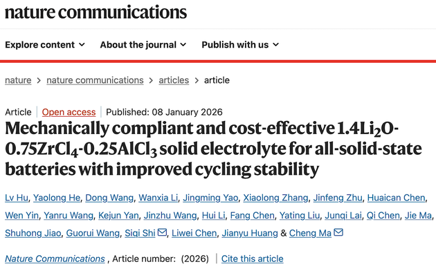 车东西1月21日消息,日前,中国科学技术大学马骋教授针对全固态锂电池难以实际应用的问题,提出了一种低成本、较为适合商业化的解决方案。